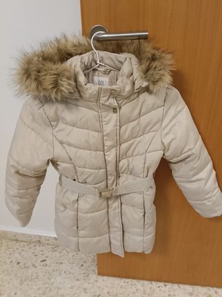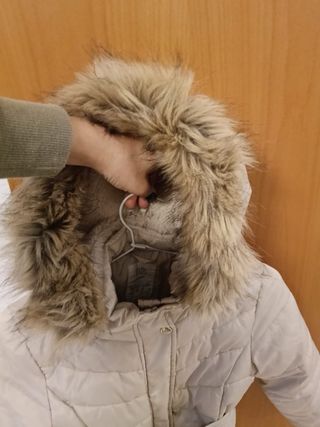 Plumífero acolchado con capucha y pelo sintético, marca kids, El Corte Inglés. - No tiene cinturón - Cierre de cremallera. - Bolsillos laterales. - Puños elásticos. -Gorro desmontable Su precio original fue de 80€. Usado 4 veces.