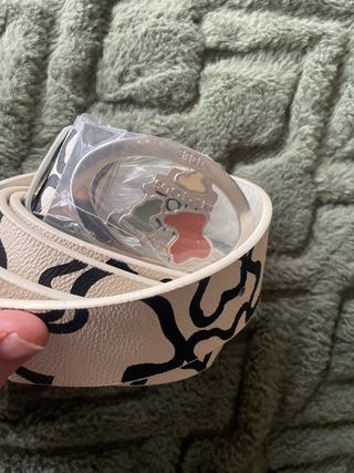 cinturón de la marca Tous se ve que está usado. tiene desperfecto interior (foto) por fuera está bien (foto) hebilla metálica beige con el oso en varios colores