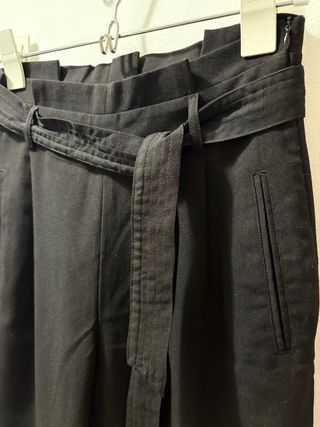 Pantalón corto de tela negro. - Cintura alta con cinturón. - Bolsillos laterales.