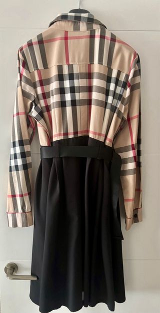 Vestido camisero con un diseño de cuadros clásico y cinturón incorporado. - Estampado de cuadros en tonos beige y negro. - Cuello camisero. - Cierre de botones. - Cinturón negro con hebilla metálica.
