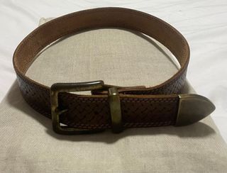 Cinturón de piel con un diseño trenzado. - Hebilla metálica. - Punta metálica decorativa.