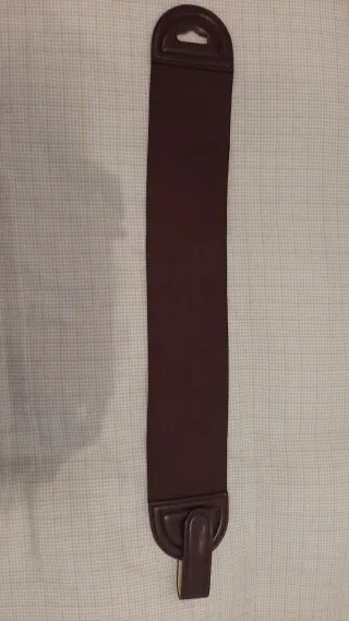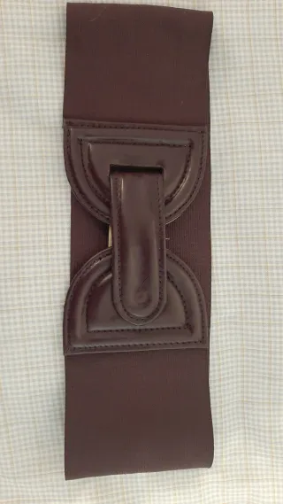 Cinturón elástico de color marrón oscuro con un diseño llamativo. - Hebilla decorativa. - Material elástico para un ajuste cómodo. - Detalle de costuras en la hebilla. - Talla 75-80 cm. - Ancho 10cm.