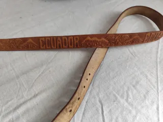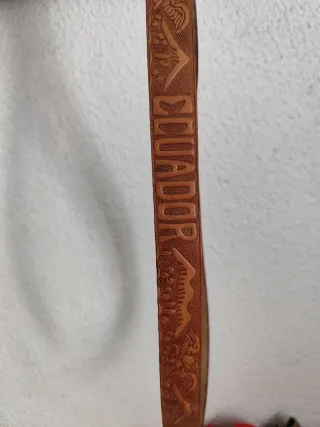 Cinturón de Ecuador Cinturón de cuero con diseño grabado. - Inscripción ECUADOR en relieve. - Motivos decorativos grabados a lo largo de la tira.