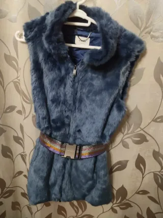 Chaleco de pelo sintético de la marca Kocca. Es un chaleco sin mangas con cierre de cremallera y cuello - Material exterior: pelo sintético. - Cierre: cremallera frontal. - Incluye cinturón con detalles brillantes y hebilla metálica.