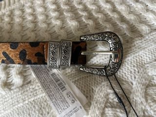 Cinturón con estampado de leopardo y detalles plateados. - Talla 80. - Hebilla con diseño. - Acabado en pelo. - Diseño en España.