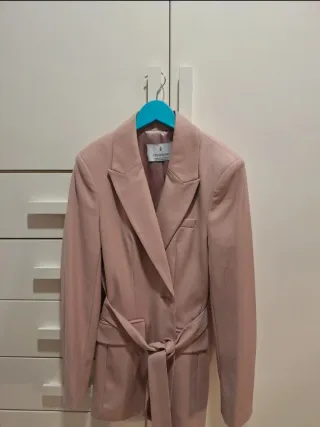 Elegante chaqueta de corte clásico con cinturón. - Diseño cruzado. - Solapa ancha. - Cinturón para ajustar a la cintura. (Se puede quitar) La vendo porque no le doy uso. Me la habré puesto un par de veces. Puedo negociar ofertas Si necesitas más fotos o tienes alguna duda, pregunta sin compromiso!! ☺️