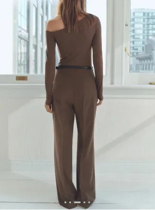 Vendo precioso mono en color marrón con cinturón de Mango en talle S a estrenar. Slim fit. La parte de arriba es de manga larga drapeado de lycra de algodón súper cómodo y escote asimétrico. El pantalón es de diseño recto, largo con cremallera lateral sin forro interior. Cinturón con cierre de hebilla. Está nuevo sin estrenar pero NO tiene la etiqueta.