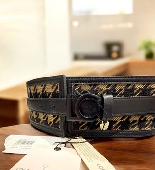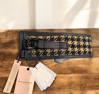 Cinturón ancho de piel sintética con estampado de pata de gallo, de la marca Lola Casademunt. Hebilla a juego con letras LC lacadas.