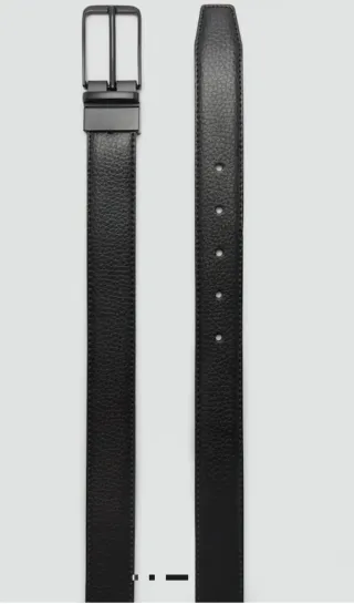 Elegante cinturón de piel para caballero, con un acabado texturizado y costuras detalladas. - Material: Piel genuina. - Longitud: 110 cm. - Color: Marrón. - Marca: Mango.