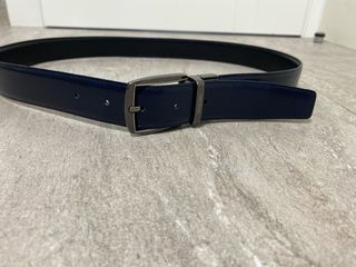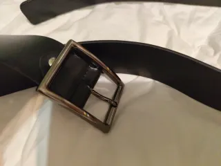 Elegante cinturón para hombre, perfecto para combinar con diferentes atuendos. - Diseño reversible. - Hebilla metálica. - Material de piel. - Mide 110cm de largo y el agujero más apretado está a 20cm