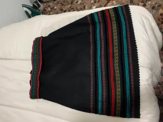 vendo conjunto de rociera,talla M 38-40,parte de arriba camisa roja de tela perforada ,con volante en mangas rojas y piconela en verde ,la falda larga en cuadros escoceses volante rojo a juego con la camisa y piconela en verde igual que las mangas, mas bonito que en la foto ,poco uso y buen precio,bajada de precio de 75 a 65 eu regalo del cinturón...