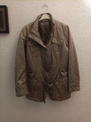 Chaqueta de mujer con un diseño elegante y práctico. Muy calentita. Pone talla 46 pero sería más bien como una 42-44, osea una L-XL. - Color marrón. - Incluye cinturón a juego. - Cierre de cremallera. - Bolsillos laterales con cremallera.