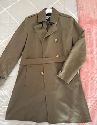 PRECIO NEGOCIABLE Abrigo trench. Poco uso. Abrigo largo con cinturón. Abrigo, chaquetón. Abrigo recto botones. Tacto suave. Gabardina de paño. Abrigo midi. Color rosa. MEDIDAS - largo: 92 cm aprox.