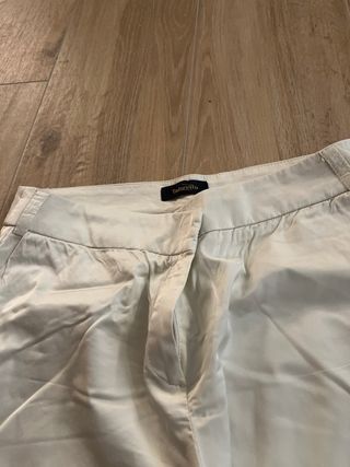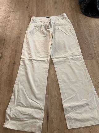 Pantalones de vestir de color blanco, con un corte elegante y moderno. - Diseño de pierna ancha. - Cintura con trabillas para cinturón. - Cierre de cremallera y botón.