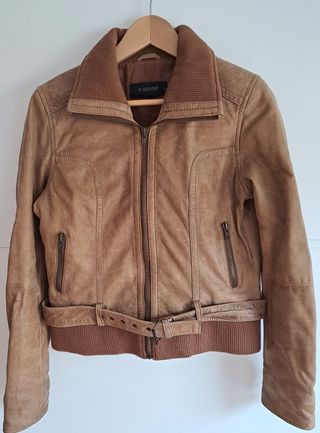 Cazadora Piel Marrón Talla M con Cinturón