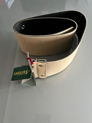 Cinturón ancho de la marca BUENBER, en color crema y sin estrenar, con etiqueta. - Diseño ancho y elegante. - Cierre con remaches metálicos.