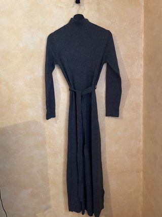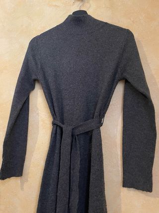 Jersey de punto gris. - Cuello en V. - Cinturón con hebilla. - Puños y bajo acanalados. Lo he usado 2 veces, está en perfectas condiciones, talla un pelín grande, sería una S-M.