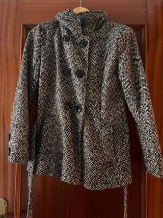 Abrigo de paño con un diseño clásico y elegante. - Cierre de botones. - Incluye cinturón a juego. - Tejido con estampado de espiga. Cómodo y flexible