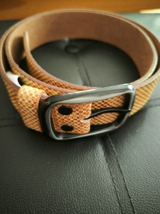 Cinturón de piel auténtica de la marca Miguel Bellido. - Fabricado en España. - Medidas: 85 cm de largo y 34 de ancho. - Piel legítima.