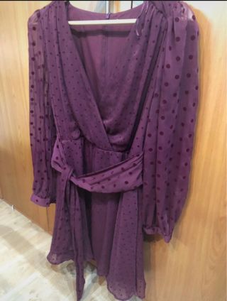 Vestido de Zara - Diseño cruzado. - Cinturón a juego. - Mangas abullonadas. - Usado una vez, talla L -Tiene una pequeña costura interna debido a que la cremallera se enganchó ( se adjunta foto)