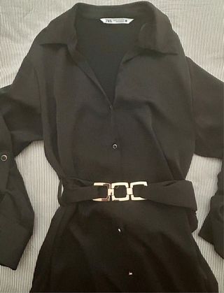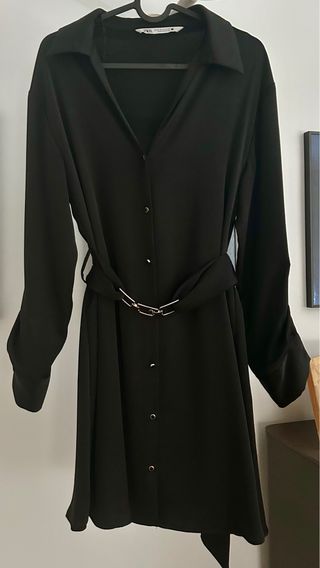 Vestido de Zara con cinturón. - Diseño de manga larga. - Cierre de botones. - Cinturón con detalle de cadena dorada.