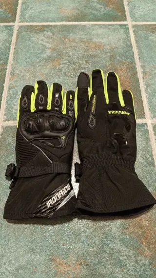 Guantes de moto de la marca Ironride. - Diseño en color negro y amarillo. - Cierre ajustable en la muñeca. - Protecciones en los nudillos. - Índices y pulgares táctiles para pantallas de móvil - Talla XL con tallaje normal, talla correctamente. - Sin uso