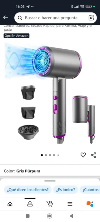 Cepillo secador muy ligero y fácil de manejar. Viene con accesorios adicionales. - Incluye guantes para el envío.