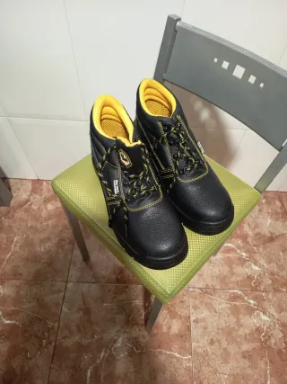 Botas de seguridad con un diseño moderno y llamativo. - Cierre de cordones. - Detalle de costuras amarillas. - Cuello acolchado para mayor comodidad.