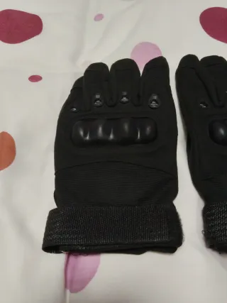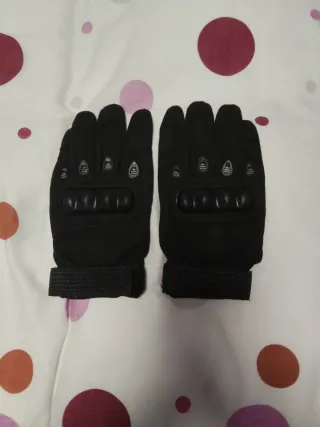 Par de guantes de moto en talla M. Diseñados para ofrecer protección y comodidad. - Mullido en la palma de la mano. - Material resistente. - Cierre ajustable en la muñeca. - Protecciones en los nudillos.