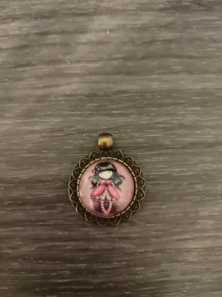 Conjunto de bisutería Gorjuss, dos anillos y dos colgantes a juego. - Dos anillos ajustables con diseño de muñeca Gorjuss - Dos colgantes con diseño igual al de los anillos