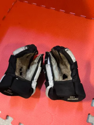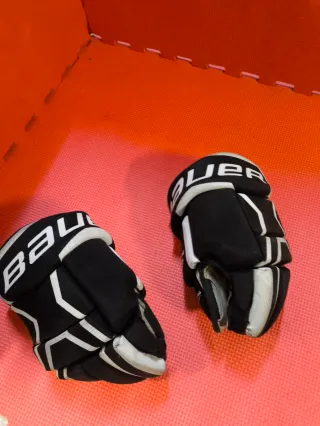 Par de guantes de hockey talla 10" necesitan arreglo en zapatero. - Diseño en negro con detalles blancos. - Marca Bauer.