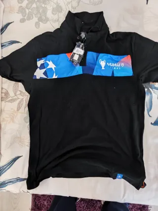 Polo del Real Madrid con diseño inspirado en la final de la Champions League de Madrid 2019. - Diseño frontal con estrellas y trofeo de la Champions League. - Detalle de Madrid 19 FINAL en la parte frontal. - Cuello con botones. SOLO ENVIO