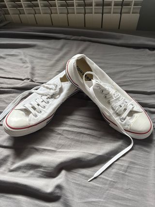Clásicas zapatillas de lona en color blanco. Perfectas para el día a día. - Cierre con cordones. - Suela de goma. - Detalle de banda en la suela.