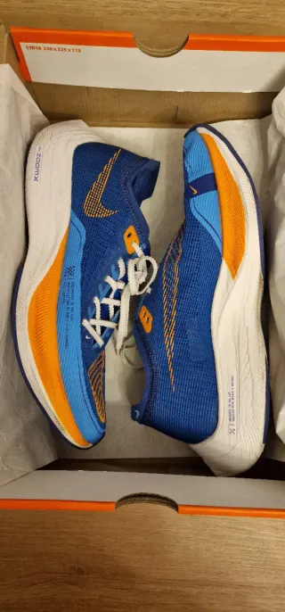 Zapatillas de running Nike Zoomx Vaporfly Next% 2 en azul y naranja. Diseñadas para ofrecer un rendimiento óptimo. - Parte superior de malla transpirable. - Mediasuela con espuma ZoomX. - Suela de goma para mayor tracción. Poco uso con su embalaje original Numero 41(26 cm) originales...Tallan pequeñas