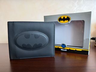 Cartera negra con el icónico logo de Batman en relieve. Diseño elegante con acabado mate, de piel sintética. Estado: Nueva, sin usar. No tiene marcas ni rayones. Incluye caja original. Medidas: 12,5 cm x 9,5 cm Diseño: Compartimentos para tarjetas, billetes y monedas Ideal para fans de Batman o como regalo.