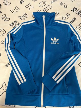 Chaqueta deportiva con el icónico diseño de tres rayas. - Cuello alto. - Cierre de cremallera frontal. - Logo de Adidas en el pecho. Talla 36