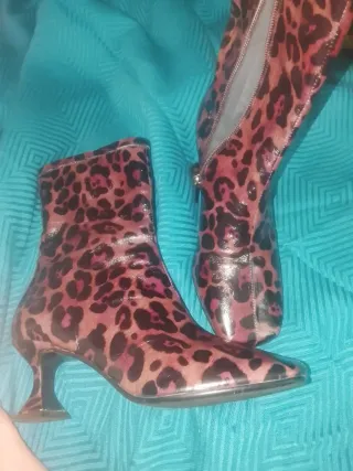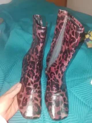 Botas de piel con estampado animal print. - Diseño de caña media. - Cierre de cremallera lateral. - Tacón cuadrado.