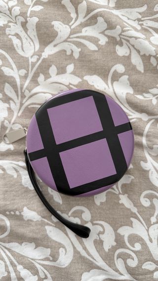 Bolso de mano Bimba y Lola con un diseño circular y llamativo. - Diseño con cuadrados morados y líneas negras. - Cierre de cremallera. - Incluye asa corta. - Material exterior piel.