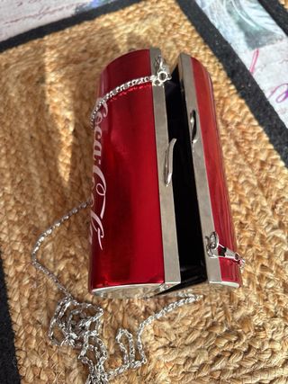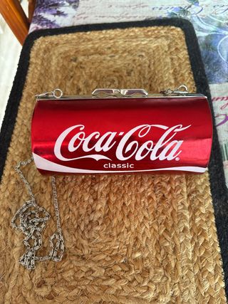 Original bolsito con forma de lata de Coca-Cola. - Diseño llamativo y divertido. - Cadena metálica para llevar al hombro o cruzado. - Cierre de clip metálico.