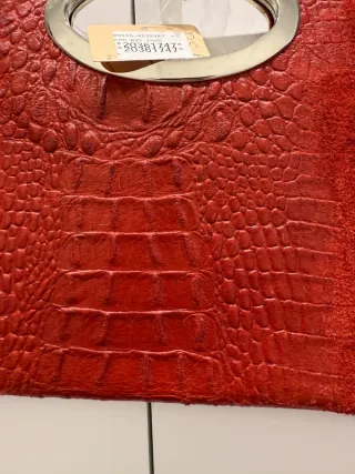 Bolso clutch de piel en rojo intenso, nuevo con etiqueta. ✨ Color: rojo intenso ✨ Material: piel con textura tipo cocodrilo en la parte central · laterales en ante suave ✨ Diseño: clutch elegante con mezcla de texturas ✨ Cierre: metálico ovalado ✨ Asa: superior metálica ✨ Estado: Nuevo con etiqueta ✨ Medidas: Ancho 35 cm · Alto 21,5 cm 📦 Envío rápido y con cuidado 💛 Si necesitas más fotos o cualquier detalle, escríbeme sin problema. ¡Gracias por dar una segunda vida a piezas con estilo! #bolso #clutch #piel #rojo #elegante #accesorios #ante #B00017