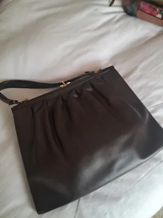 Elegante bolso vintage de piel, de origen italiano. Su interior está forrado de ante. #vintage #bolso #leather #piel #clutch #retro - Diseño clásico. - Cierre metálico dorado. - Asa de mano. - Acabado brillante.