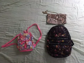 Lote de 3 bolsos: mochila, clutch y bandolera