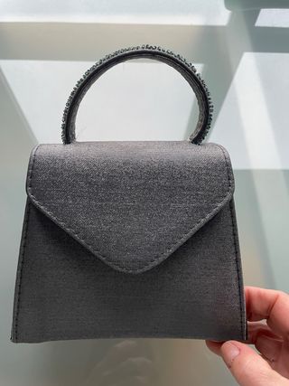 Bolso de mano gris con pedrería
