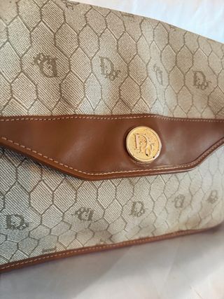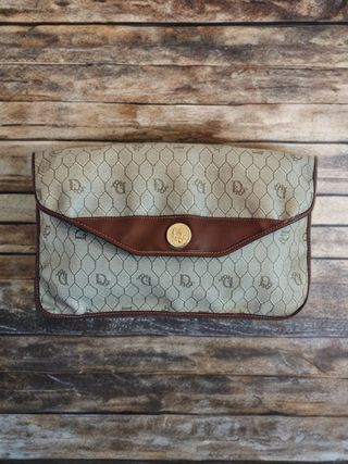 Elegante bolso clutch de la marca Dior con el distintivo estampado Honeycomb. Bolso Vintage años 70. Medidas: 27x18 cm - Diseño clásico y atemporal. - Acabado en piel marrón en la solapa y ribetes. - Detalle metálico dorado en el centro.