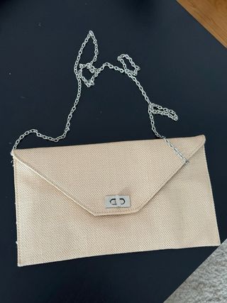 Bolso clutch de mano color beige sin estrenar