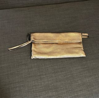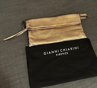 Elegante bolso tipo clutch de Gianni Chiarini. - Acabado metálico en tono dorado. - Diseño plegable y moderno. - Incluye funda guardapolvo negra con logo. Más cositas en mi perfil.