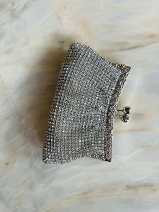 Bolso joya clutch pedrería brillante plateado