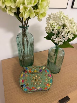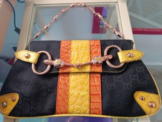 Suelto un pedazo de mi vida: este bolso de hace 20 años, regalo de alguien que ya no está. Un tesoro custodiado con el brillo intacto de la moda de los 2000. Cuando lo lucía, era la envidia de todas por sus dragones de cristal y colores solares. Me daba pánico estropearlo, así que ha pasado décadas envuelto con mimo, esperando citas "suficientemente especiales". Sé que hay piezas de pasarela de miles de euros; para mí su valor es sentimental. No aseguro origen ni tengo papeles. Su cadena es liviana, quizá sea una copia vintage de calidad asombrosa. Quiero que alguien lo disfrute sin mi miedo. Una ganga con historia e identidad.