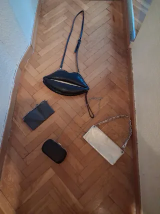 Lote 4 bolsos: labios, clutch negro, plata