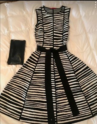 Vendo vestido Carolina Herrera nuevo, solo usado una mañana en un bautizo y de ahí al armario! Está en perfecto estado, prácticamente a estrenar. Es de punto del que no marca, al ser punto más bien grueso hace efecto faja y ayuda a minimizar las lorcitas. Con estampado animal print cebra, muy favorecedor y versátil, con salones destalonados y clutch para ir arreglada y con cuñas de esparto para outfits más casual. Lleva cinturón para hacer lazada, también de punto, con las iniciales de la marca. Es talla S que sirve para una 34-36. El vestido costó 490€, se ve en una de las fotos y lo vendo por 260€